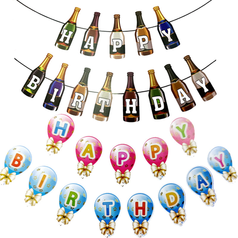 Nicro Novo Design Feliz Aniversário Carta Pendurada Ppaer Banner Cerveja Garrafa De Vidro Forma Decoração De Parede Garland Partido Fundo