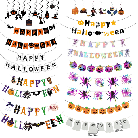 Nicro Venda Quente Personalizado Casa Pendurado Decorações Abóbora Bat Aranha Papel Banner Garland Pingente Feliz Dia Das Bruxas Fontes Do Partido